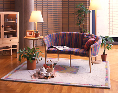 ジャパニーズ・コンテンポラリーをキーワードに開発した。格子柄を活用しながら適切な曲面で体を支えて、快適さを確保し同時に、日本の空間への調和を想定した。