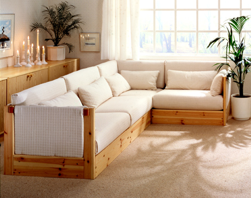 パイン材をたっぷり贅沢に使ったフレームに厚めのクッションでバランスを整えた。ラステックな表情が懐かしい。