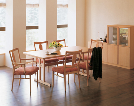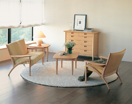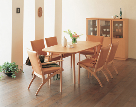 成型合板を活用したシリーズで、コンテンポラリー・モダーンを志向した。曲線が織り成すやさしい表現に、長年にわたって培った技術が冴える。やさしい曲線は体にフイットして安らかなサポートを約している。