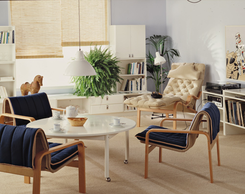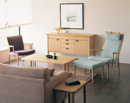 リビングのイージーチェアーや2P,3Pソフアーとテーブルを中心に開発を始める。このリビングで使う椅子の特徴はフレームをシャープに見せ、なおその強度を支えるために逆U字型のスプリングを使った点である。最初に座った時のショックをスプリングで受け、フレームへの波及を抑えている。その後、ダイニングチェアーとテーブルをデザインする。ダイニングの椅子にアームチェアーが仲間入りしたのは20年後の2000年だった。現時点で最後となったアイテムは回転椅子であり2002年にラベンダーのフアミリーとなる。