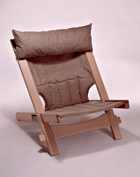 成型合板のフレームを使う。キャンバス地にパイプでシートポジッションを作り、薄いクッションにキルトを施した。