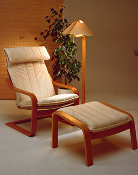 成型合板の剛性とキャンチレヴァーの形状との相乗効果によって快いスイングと快適な座り心地が求められた。現在はポエングと呼称を替え30年、超ロングセラーの更新中である。しかし、私にとって時間と量の記録より価値あることは、デンマークのドクターが椅子の快適さの調査をされたことがあった。そして、ポエムが最も高い評価を下だされたことだ。イタリアのDOMUS誌1988年2月ページ75に使われている。